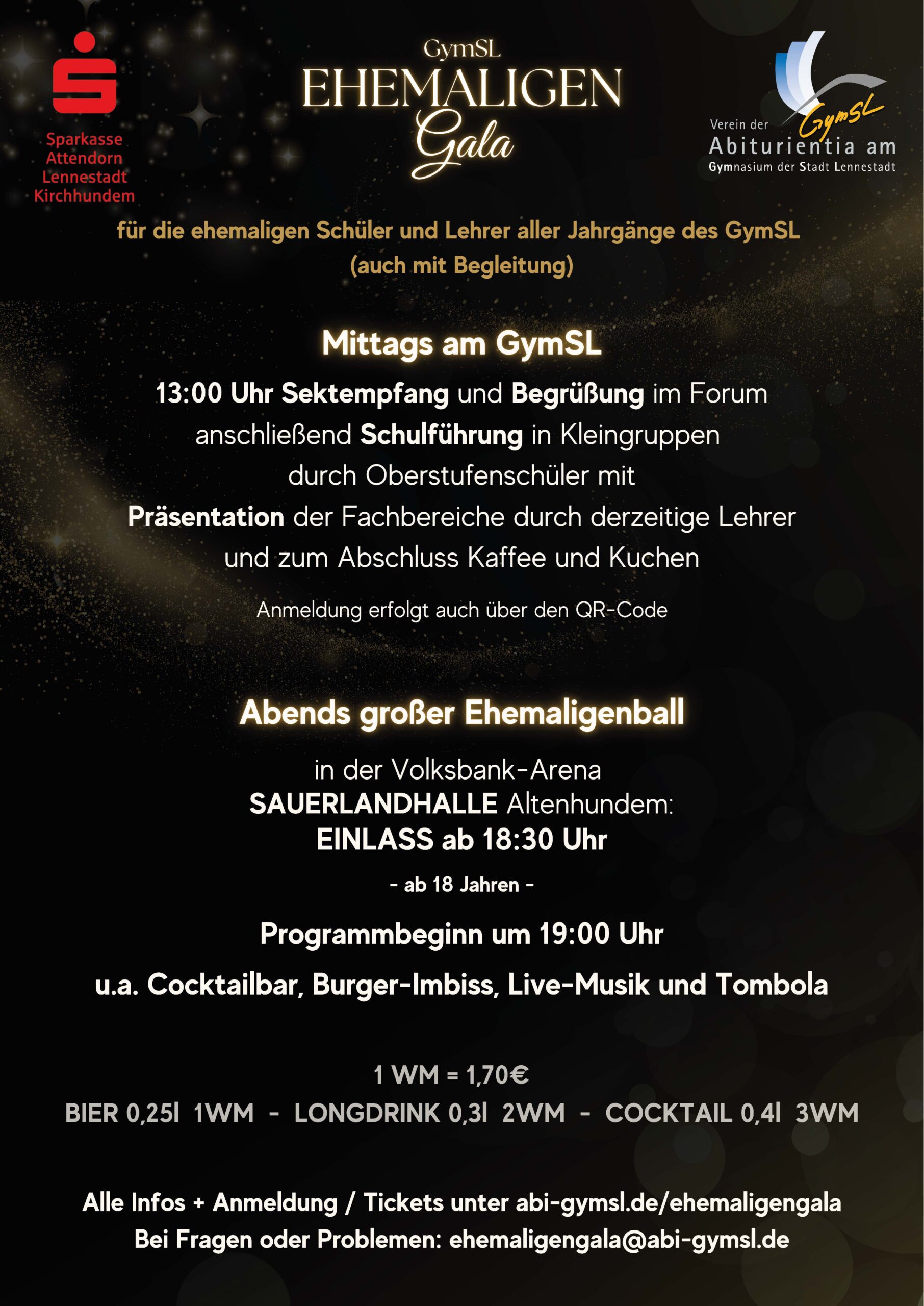 Bei Problemen mit unserem Ticketsystem oder Rückfragen zur Veranstaltung, wenden Sie sich an ehemaligengala@abi-gymsl.de